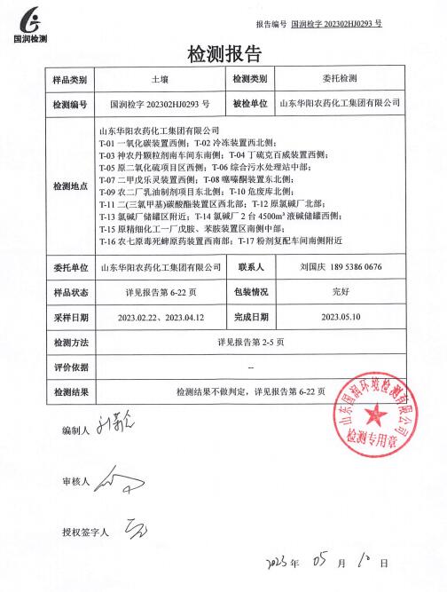 公司動態(tài) 首頁 > 華陽新聞 > 公司動態(tài) > 列表 山東華陽農(nóng)藥化工集團(tuán)有限公司土壤檢測報(bào)告 附件:山東華陽農(nóng)藥化工集團(tuán)有限公司土壤檢測報(bào)告.pdf